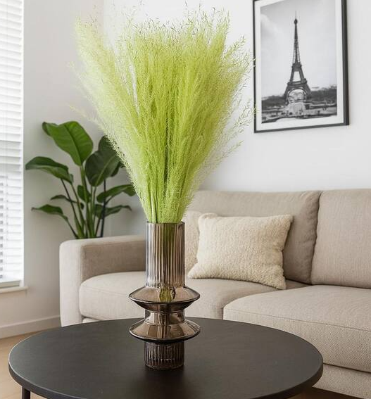 Asparagus setaceus est une plante ornementale utilisée principalement comme feuillage décoratif dans l’art floral. Elle se caractérise par ses tiges fines et ses feuilles très délicates qui ressemblent à des plumes ou à une dentelle légère. Sa couleur est généralement vert naturel, mais elle peut aussi être teintée pour des usages décoratifs. Cette plante est très appréciée dans la composition de bouquets de fleurs, la décoration de mariages et d’événements, ainsi que pour embellir les arrangements floraux et les emballages de cadeaux. Dans le commerce, elle est vendue fraîche, séchée ou parfois colorée pour différents styles de décoration. 🌿💐