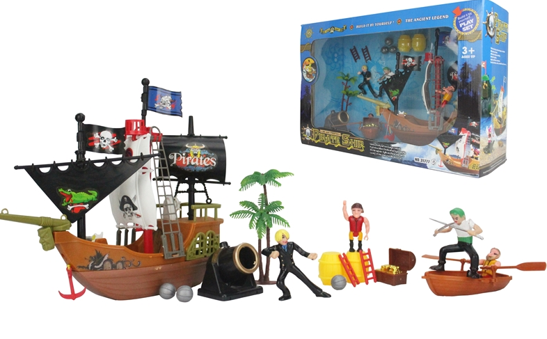 Embarquez pour de grandes aventures avec ce bateau pirate avec figurines, idéal pour les jeunes explorateurs et les passionnés de piraterie. Ce navire détaillé dispose de voiles réglables, de canons mobiles et d’un coffre au trésor amovible pour des jeux encore plus immersifs. Il est accompagné de plusieurs figurines de pirates articulées avec épées et accessoires, parfaites pour recréer des batailles navales ou inventer de nouvelles histoires. Les enfants peuvent laisser libre cours à leur imagination tout en développant leur coordination et leur sens du jeu de rôle. Un jouet ludique et créatif qui promet des heures de divertissement sur terre ou sur l’eau.