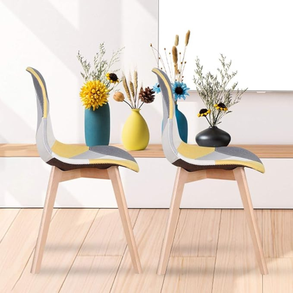 ✅ Design artistique en blocs de couleurs : le revêtement de la chaise utilise une technique de patchwork coloré, entrelacée de différentes teintes, créant un look artistique unique qui brise la monotonie et devient facilement un accent décoratif.Il complète divers styles, notamment moderne et nordique.