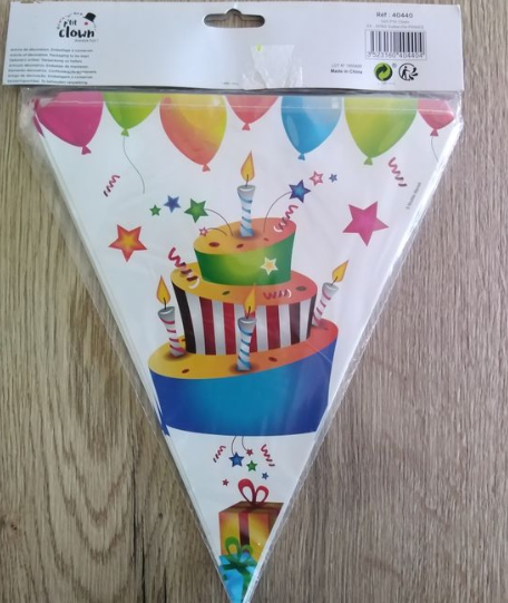 Guirlande fanions triangulaires “40 ans” idéale pour décorer et célébrer un quarantième anniversaire. Cette guirlande festive apporte une touche joyeuse et élégante à votre décoration de fête, parfaite pour créer une ambiance conviviale et mémorable.Composée de fanions en forme de triangle, elle affiche le chiffre 40 pour marquer cet événement important. Facile à installer, elle peut être suspendue au mur, au-dessus d’une table, dans une salle de fête ou dans un jardin pour une célébration en intérieur comme en extérieur.
